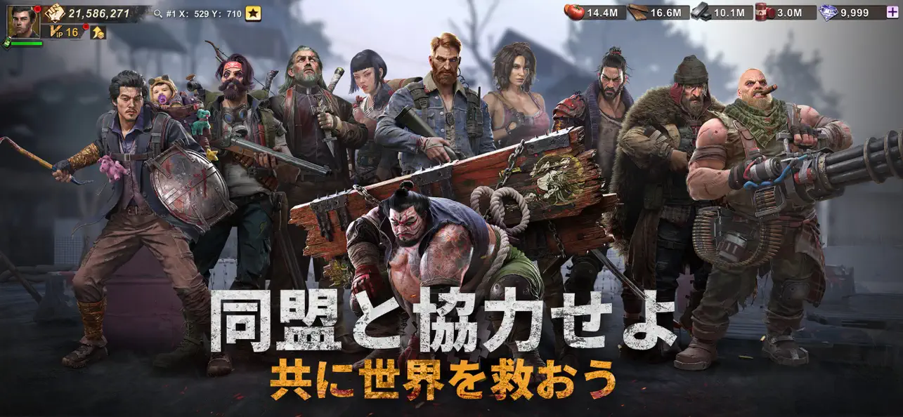 ゲームを進めると、同盟に加入できるようになります。同盟に参加することで、共にゾンビを討伐したり、敵勢力プレイヤーと戦ったりと、戦略的な遊びが大幅に広がります。協力するほど建設が早く進む仕組みがあるため、同盟に加入するメリットは非常に大きいです。