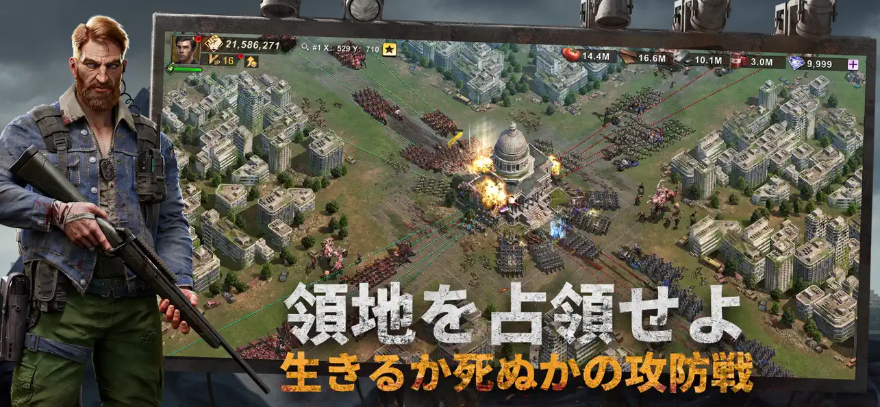 『ドゥームズデイ:ラストサバイバー』は、ゾンビが蔓延した世界で生存者を導き、シェルターを強化しながら領土を広げていくリアルタイム戦略ゲームです。プレイヤーは、ヒーローたちを指揮し、ゾンビとの戦闘や資源の確保、他プレイヤーとの同盟・対戦など多くの要素を同時にこなしていきます。