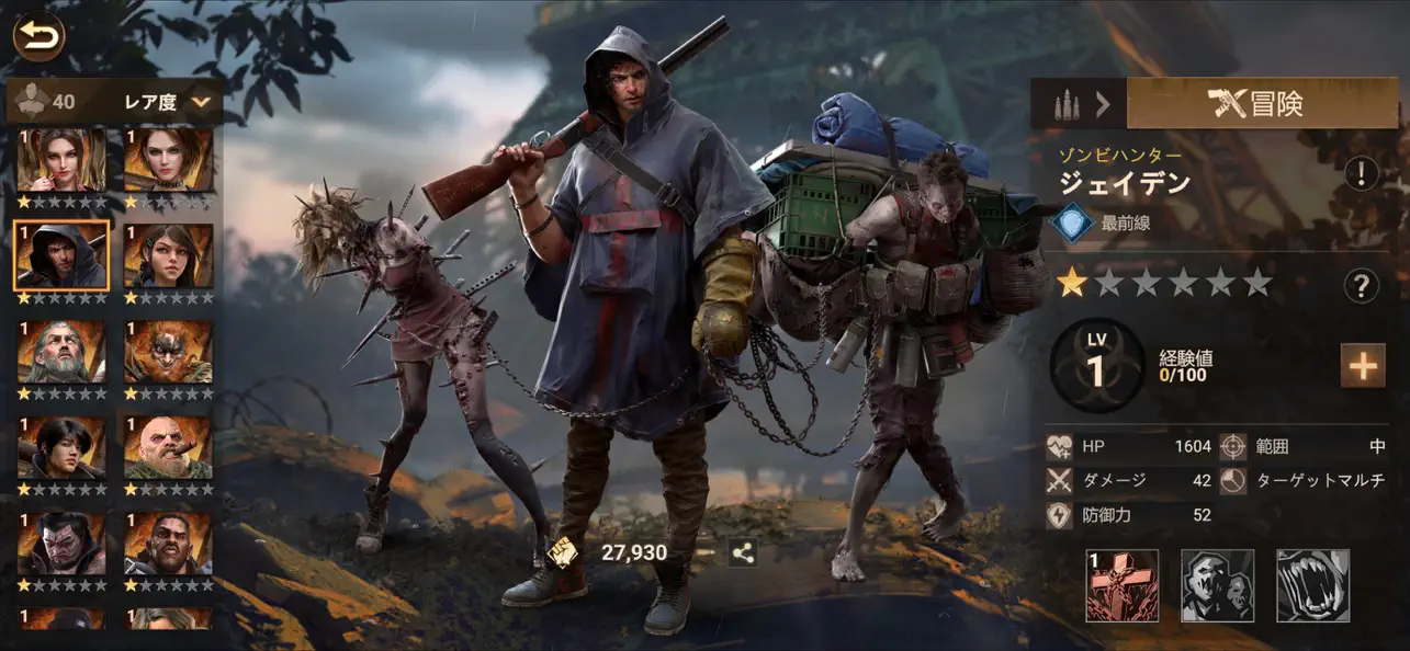 火炎放射器でゾンビを焼き払うヒーローがいれば、仲間の体力を回復できるヒーラー気質のヒーローもいます。どのヒーローを育てるかによって戦い方が変わるのが魅力で、「推しを育てる」という楽しみが戦略性と直結していると感じました。