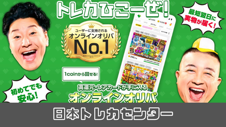 日本トレカセンターは、オンライン上でトレーディングカードのオリパを回し、当選したカードが実際に自宅へ配送されるサービスです。ポケモンカードや遊戯王など、人気タイトルを中心に幅広いラインナップが用意されており、初心者からコレクターまで楽しめる設計になっています。