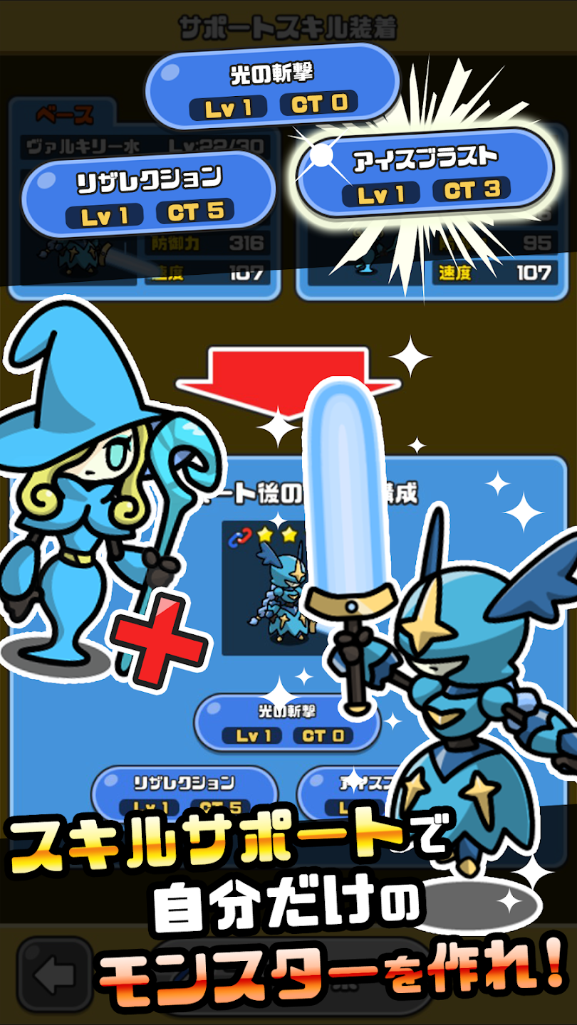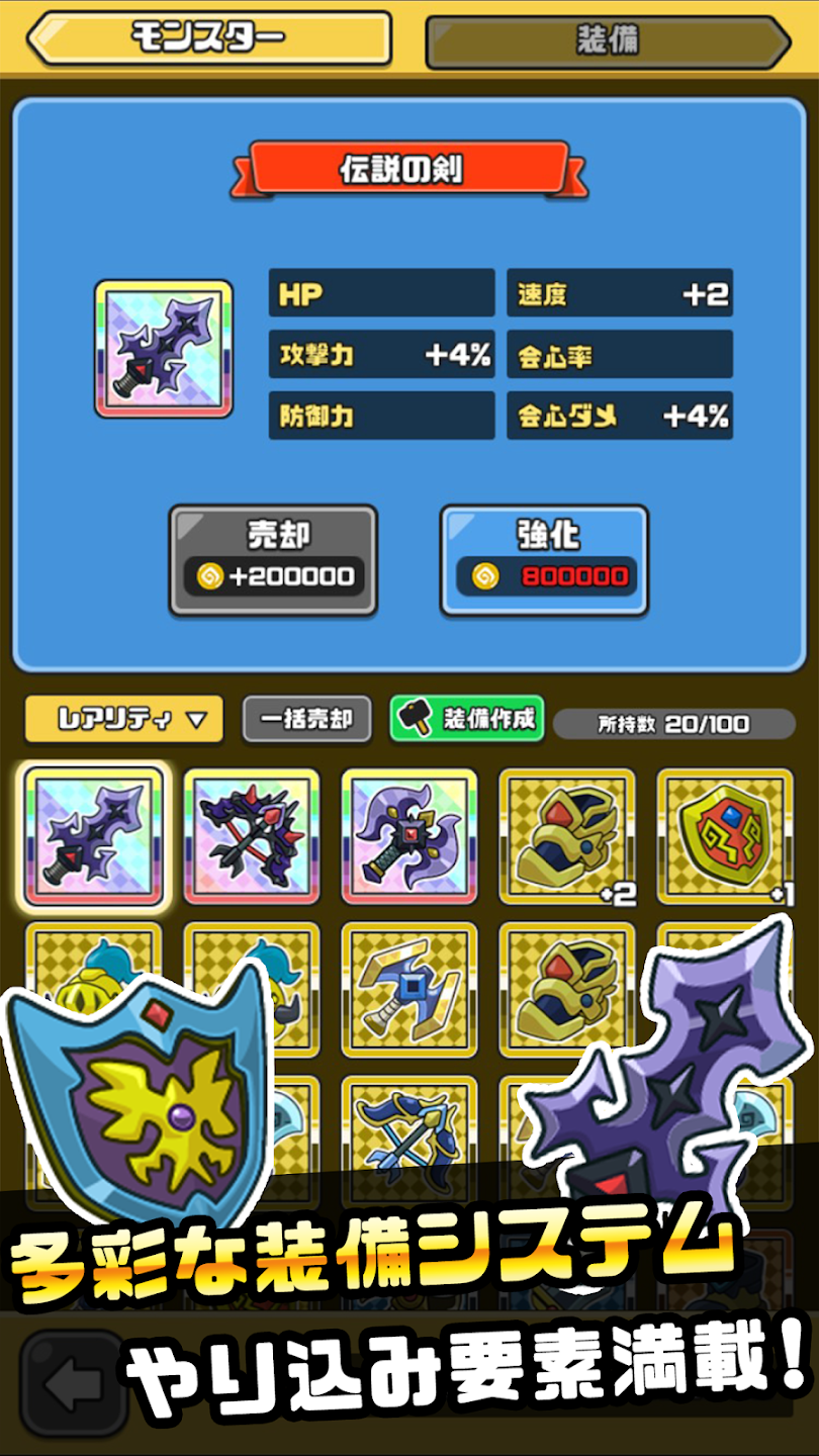 育てる楽しさがあふれており、レベルアップや進化、装備強化によって着実に戦力が伸びていきます。お気に入りのまものを見つけて重点的に育成したり、攻略に合わせて新しいまものを試したりと、プレイヤーごとの遊び方が自然と生まれます。コレクション要素も強く、まものを集めるだけでもモチベーションが維持される点は大きな魅力です。