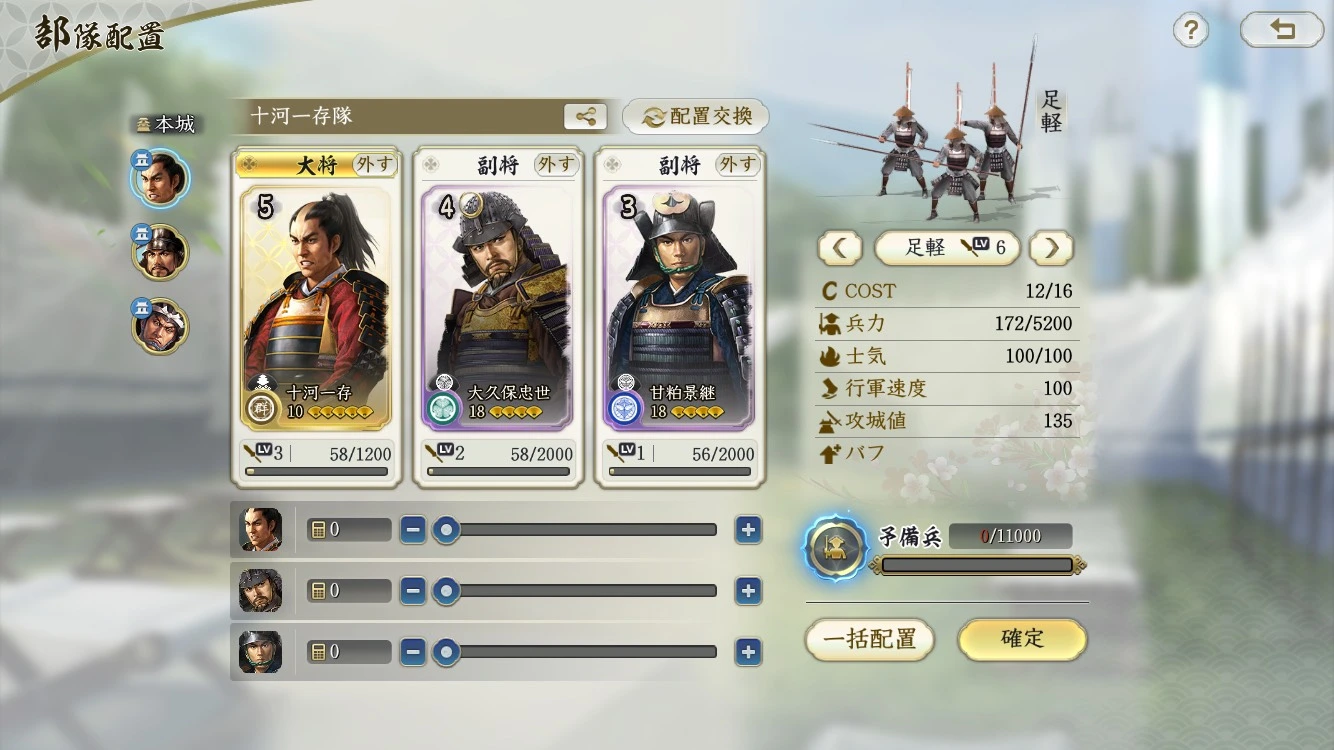 序盤の土地攻略や任務進行には問題なく対応でき、結果的に全体の進行スピードが上がります。後々高レア武将を入手した際も、素材として無駄になりにくい点もメリットです。背伸びしない編成が長く安定して遊ぶコツです。