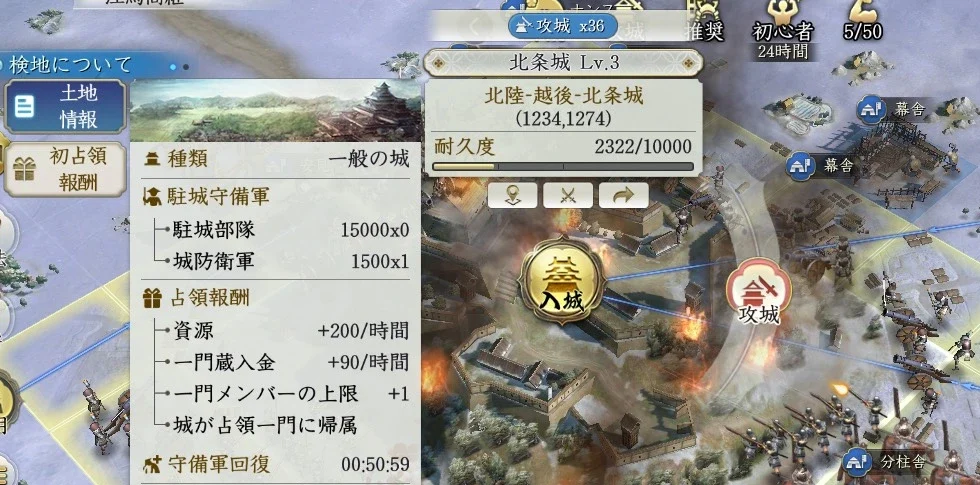 序盤の成長を左右する最大の要素は資源です。資源地の確保が遅れると、武将育成や建築が滞り、戦力差が一気に広がってしまいます。無理に高レベル土地を狙う必要はなく、確実に勝てる土地を一つずつ増やしていくのが重要です。