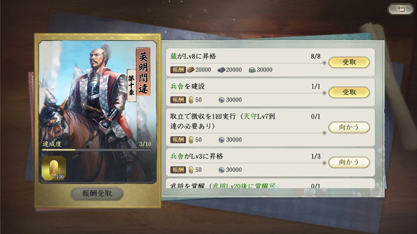 ゲーム開始直後は自由度が高く、何をすればいいか迷いがちですが、最優先すべきは任務の達成です。任務を進めることで資源、武将経験値、各種機能解放がテンポよく進み、結果的に最短ルートで戦力を整えられます。