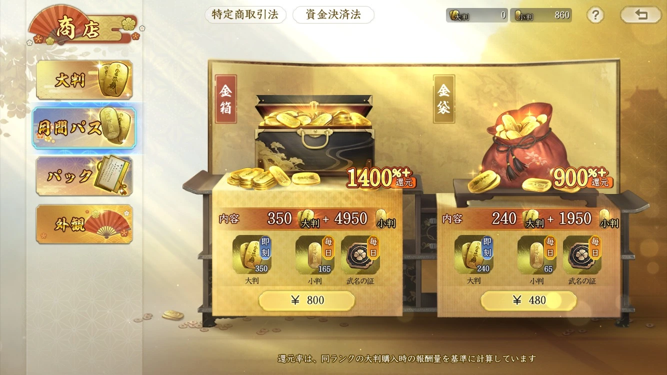 月間・週間パス:毎日報酬を受け取れる 継続プレイ向け要素