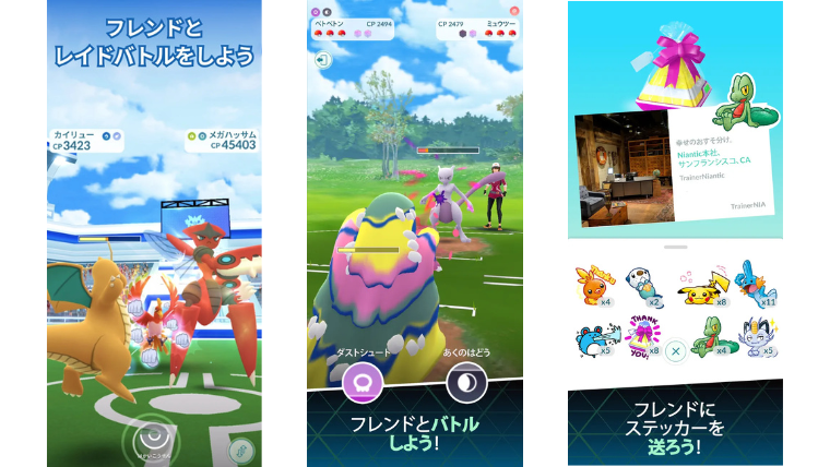 歩くだけでレベルアップし、友達と協力して強力なポケモンに挑戦できる