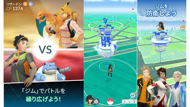 ジムやポケストップと呼ばれる場所ではアイテムを手に入れたり、他のプレイヤーとバトルしたりできます