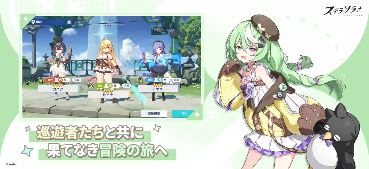 ステラソラは、星々の力を操るキャラクターたちと共に冒険するファンタジーRPGです。プレイヤーは「星の導き手」として、仲間を集め、広大な空の世界を探索しながらストーリーを進めていきます。