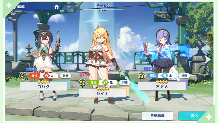 バトルでは属性の相性が重要です。序盤から同じ属性ばかりで固めると不利になりやすいため、できるだけ異なる属性を揃えたパーティを組むのがコツ。